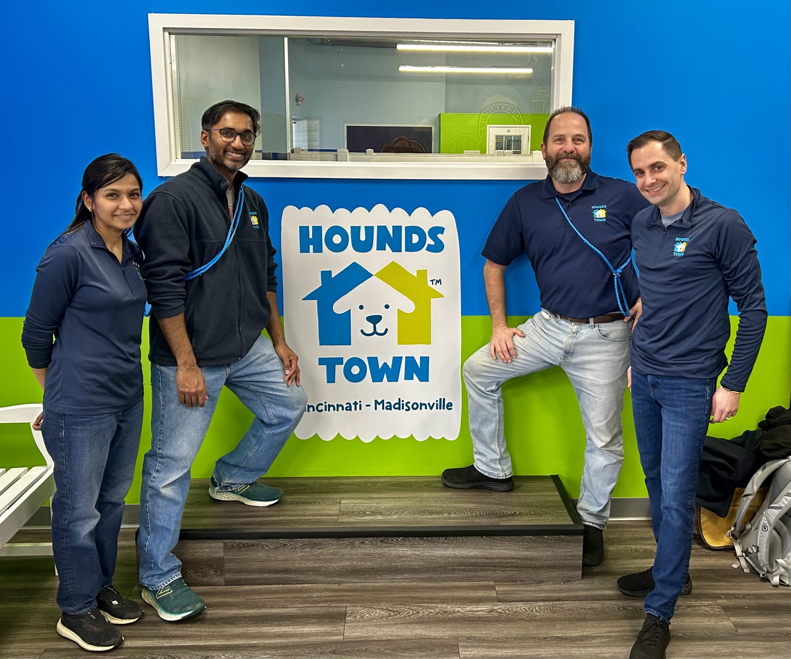 “My puppy LOVES hounds town!! The second we walk through the door he sprints to the employees and then to the back door. My fiancé and I love how convenient it is and the fact that they send pictures and updates throughout the day. Our pup gets lots of energy out while he’s there which is also great. We will continue taking him to HT and would highly recommend it!”