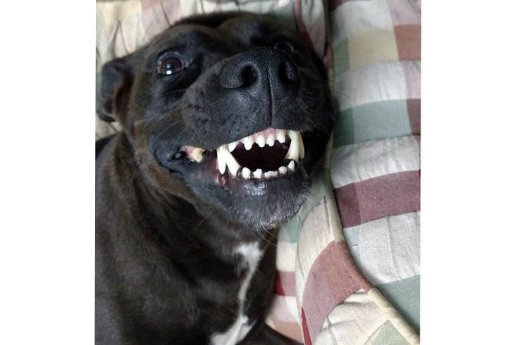 If you’ve ever been to Hounds Town – Port Jefferson, chances are you’ve probably met (or been scared by) Roscoe, the franchise’s resident pit bull. Roscoe came to the popular dog daycare for boarding through a (now defunct) rescue group in 2012. Due to severe behavioral issues, the rescue lost interest in attempting to place the pit bull and eventually forgot the boarding franchise even had him. In 2013, Hounds Town owner Marianne Carrano Deszcz forced the group to relinquish Roscoe to her, and she has cared for her pit friend ever since. Roscoe loves all dogs and cats, but he is still extremely uncomfortable around people he doesn’t know. He prefers to sleep in the Hounds Town lobby at night, protecting his home and animal friends from the many, many invaders.
